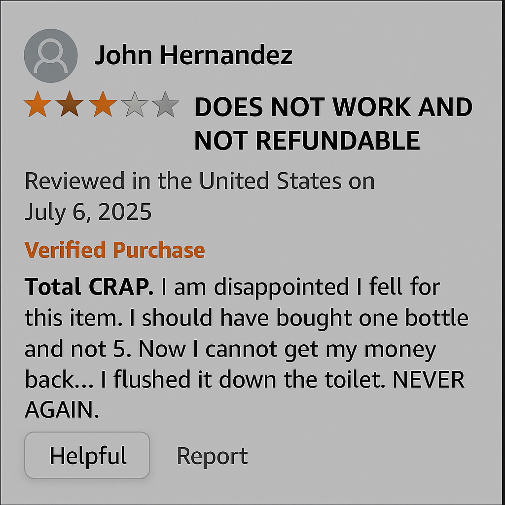 Our team uncovered numerous alarming complaints from individuals who ordered what they believed to be Nagano Tonic™ through third-party websites like Amazon, eBay, or even Walmart. These customers reported receiving counterfeit bottles with altered or completely different ingredients — products that were not only ineffective but also carried potential health risks.