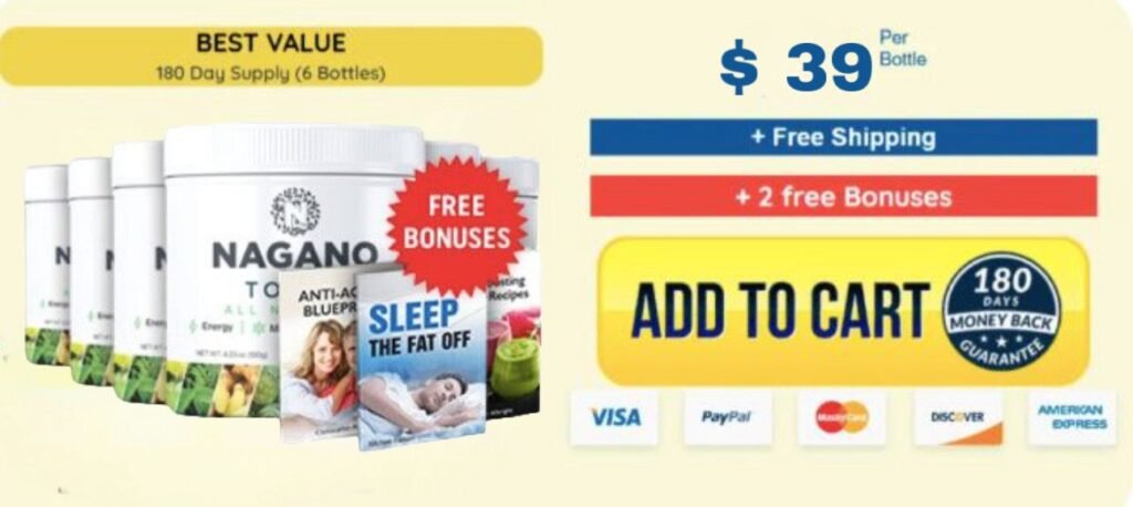 This is the only guaranteed way to receive the original Nagano Tonic™ formula, created to target the root causes of weight gain using clinically backed natural ingredients. Plus, every order is protected by a 180-day money-back guarantee, so you can try Nagano Tonic™ completely risk-free: see real results or get your money back — no questions asked.